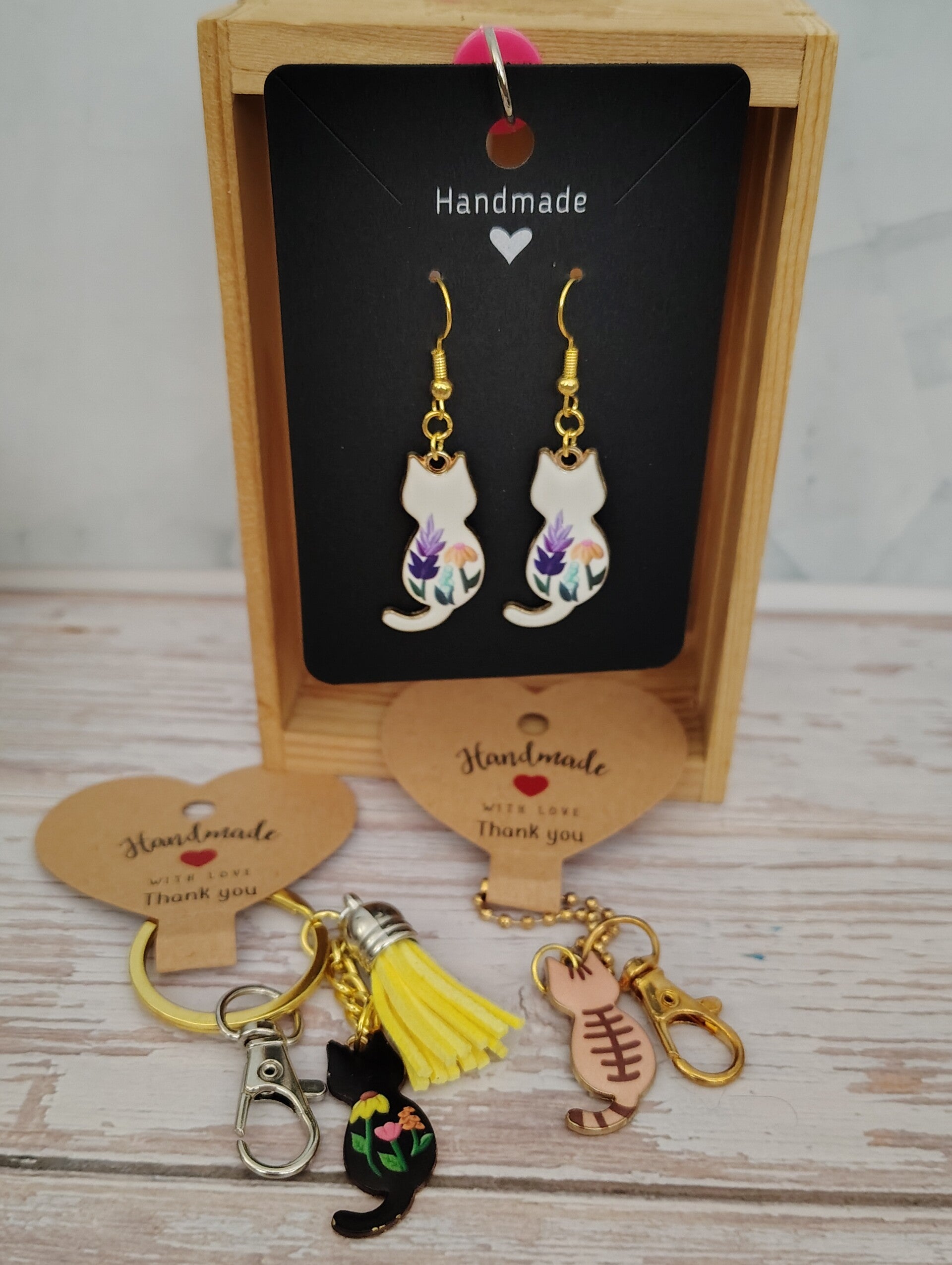 Step into a world where feline charm meets sophisticated design. Our Classy Cat Collection offers exclusive, limited edition earrings and keychains that are as unique as you are. Discover pieces crafted with passion and an eye for detail, designed to add a touch of elegance to your everyday.